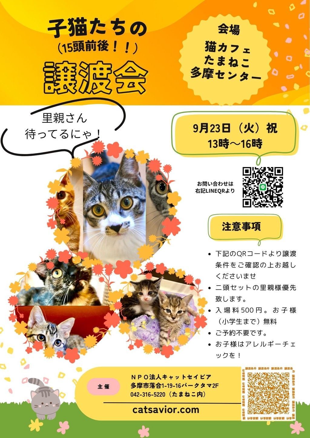 子猫が中心の譲渡会です。できるだけ2頭セットのお迎えの方歓迎!成猫も10頭くらいおります。