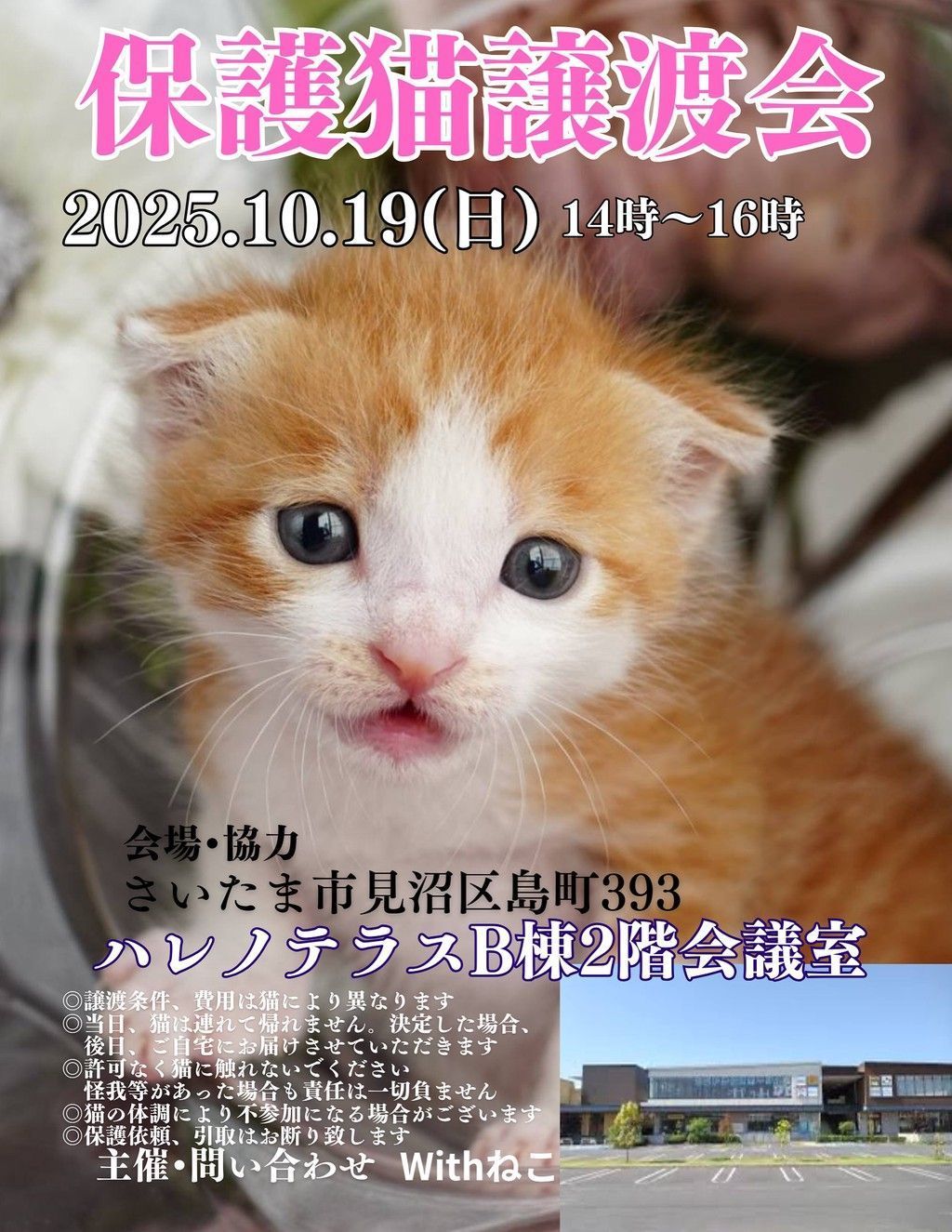 ※当日、猫の体調・里親決定の場合は不参加になる場合がございます