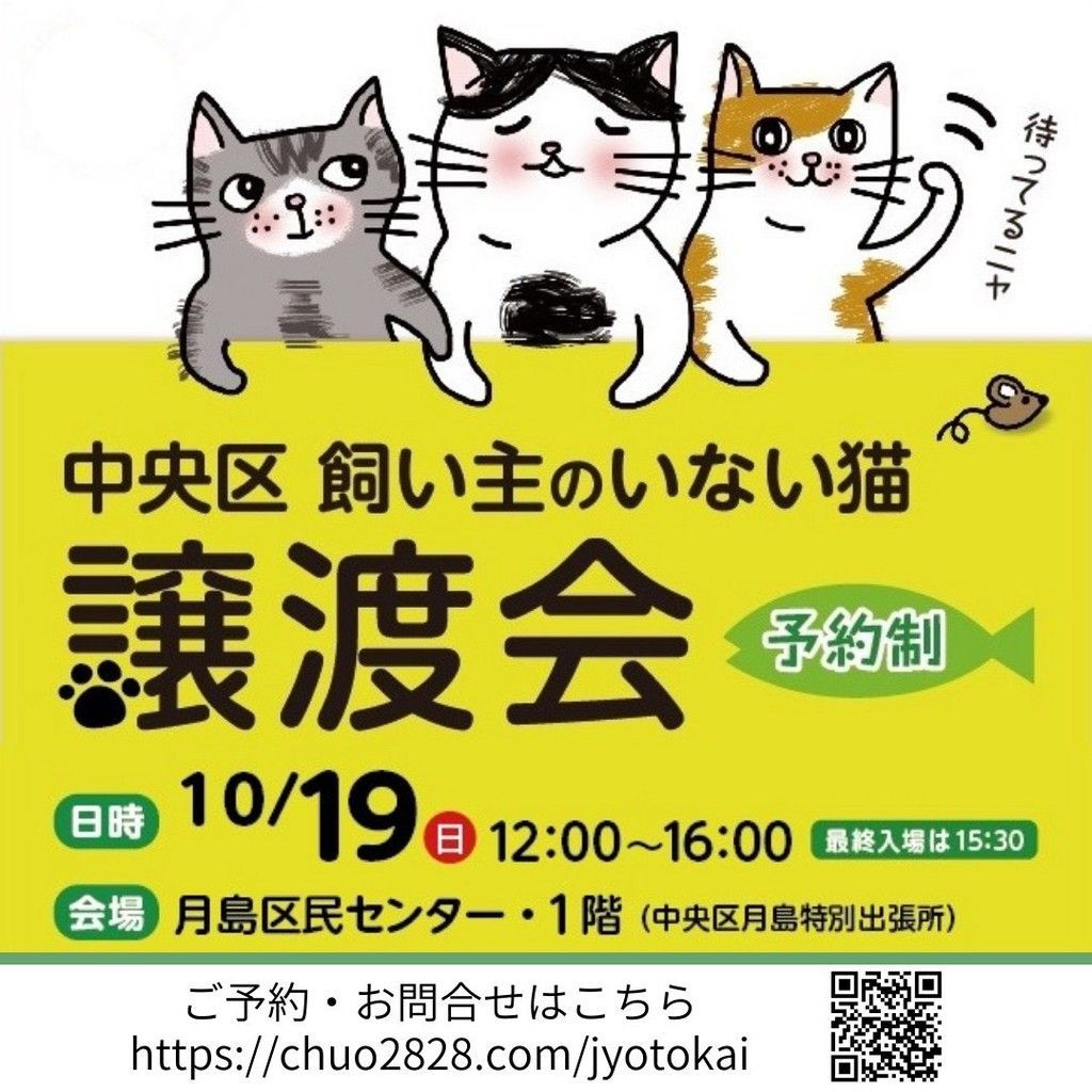 【10/19(日)12:00-16:00】月島で行われる中央区飼い主のいない猫譲渡会に参加予定です。