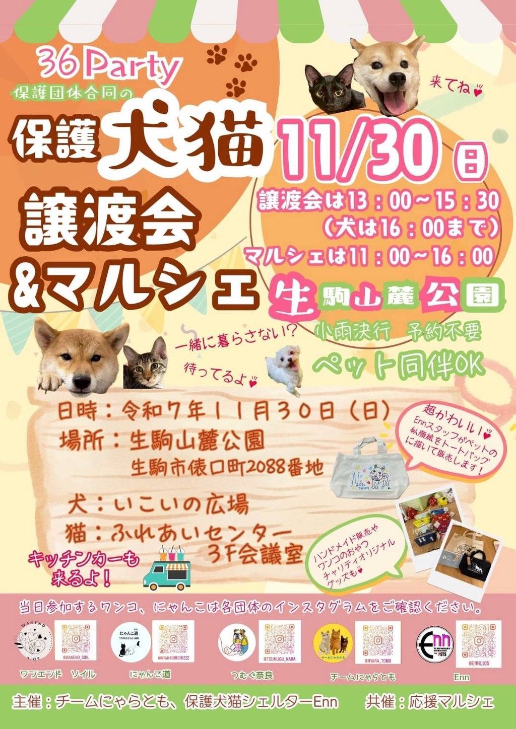 36Party 保護団体合同の保護犬猫譲渡会&マルシェ⭐︎
