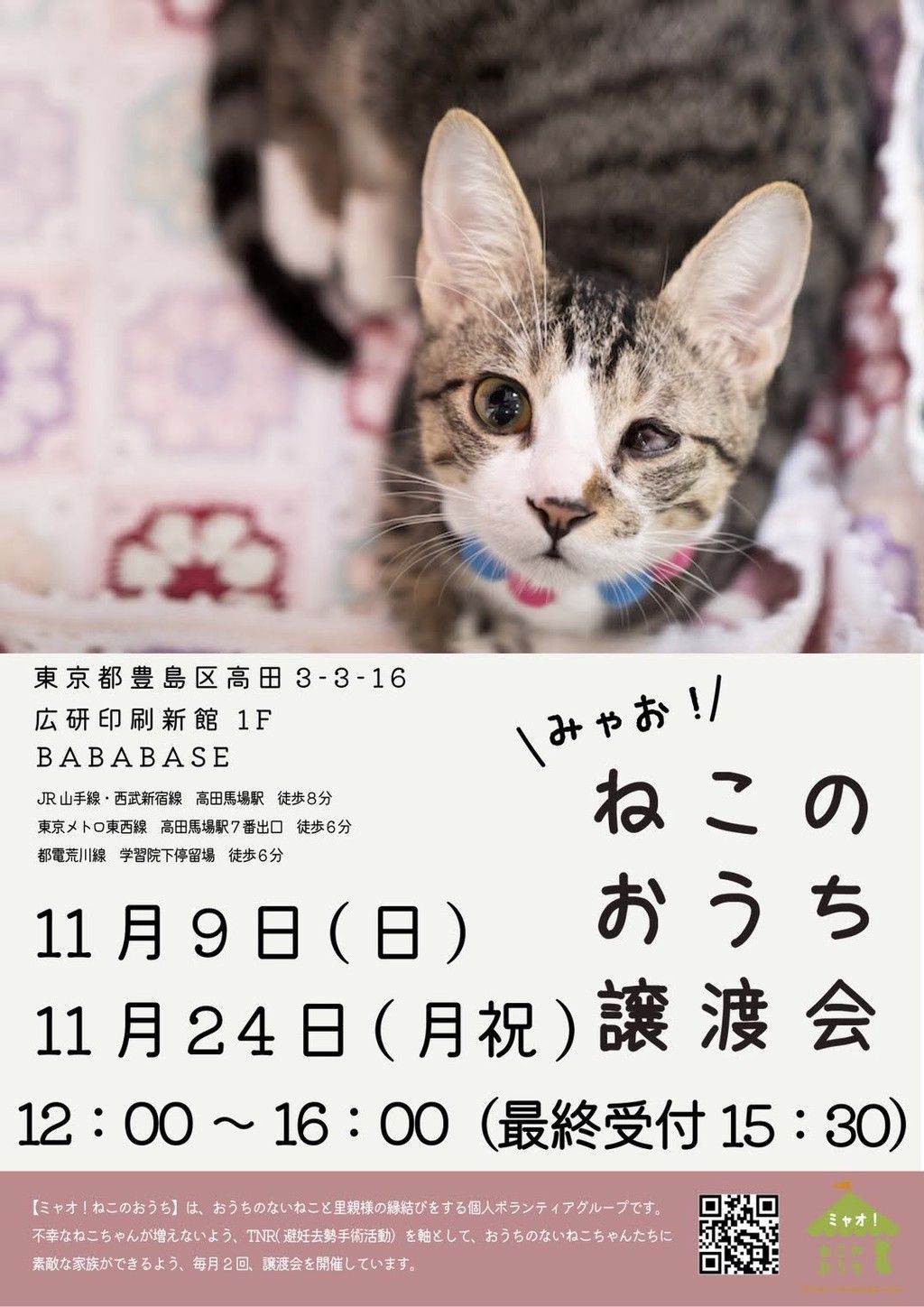 【ミャオ!ねこのおうち】は、おうちのないねこちゃんと里親様の縁結びをする個人ボランティアグループです。