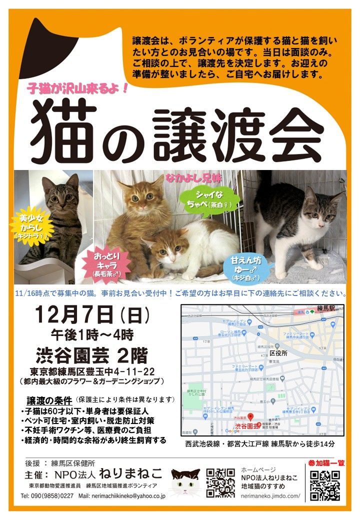 練馬区公認の地域猫推進ボランティアが保護した猫たちが参加します。