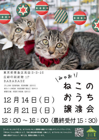 東京都内で譲渡会を開催(参加費無料)しています。