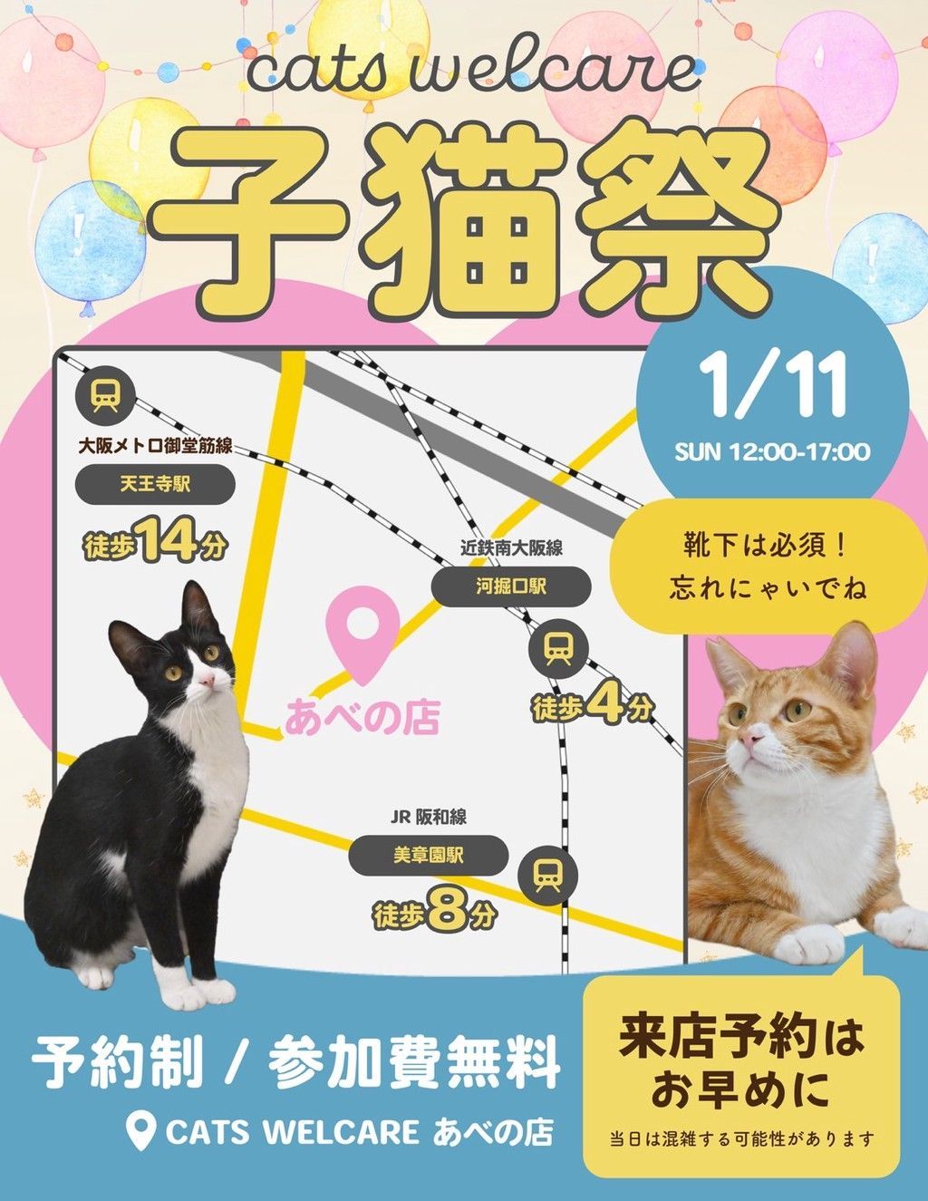 会場: NPO法人 CATS WELCARE ほごねこルームあべの店 (大阪市阿倍野区三明町1丁目8-26)