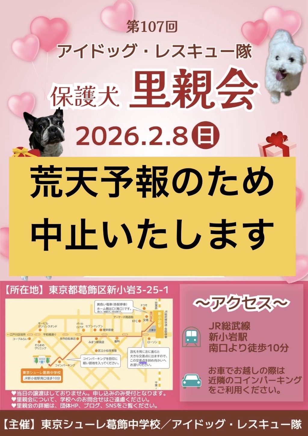 ⚠️第107回 アイドッグ里親会 in 新小岩 中止のお知らせ⚠️
