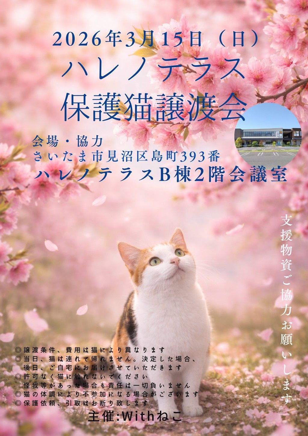 ※当日、猫の体調・里親決定の場合は不参加になる場合がございます