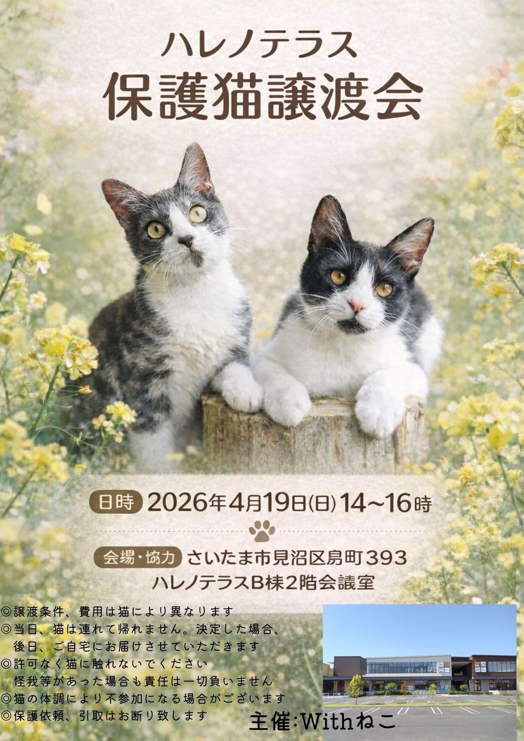 ※当日、猫の体調・里親決定の場合は不参加になる場合がございます