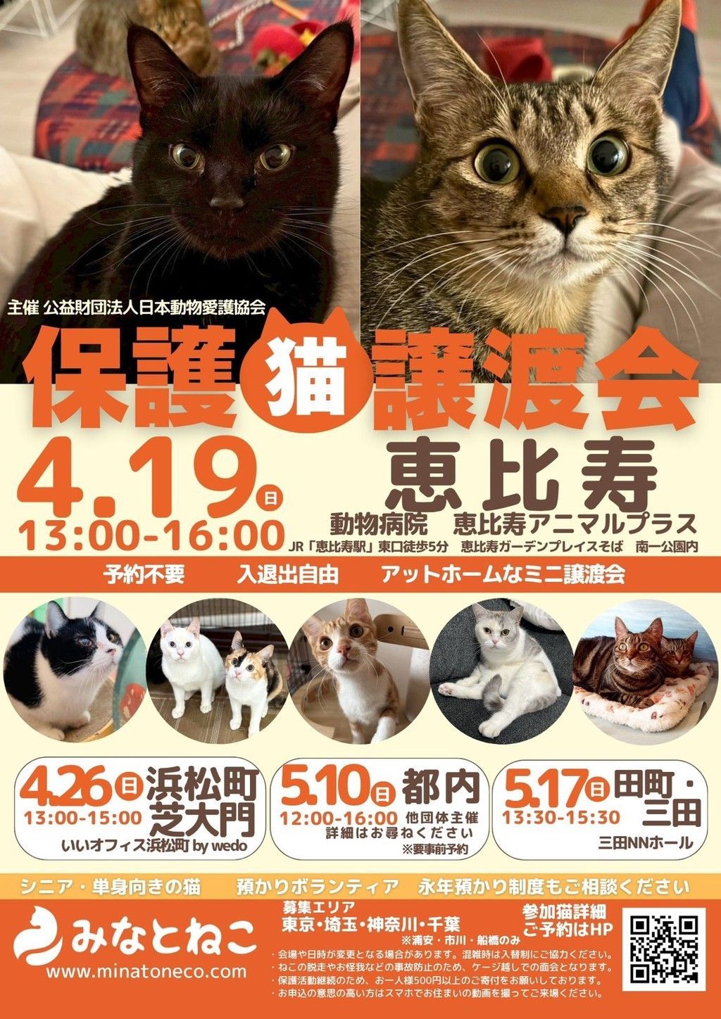 【 4/19(日) 恵比寿】で行われる公益財団法人日本動物愛護協会主催の保護猫譲渡会に参加予定です。