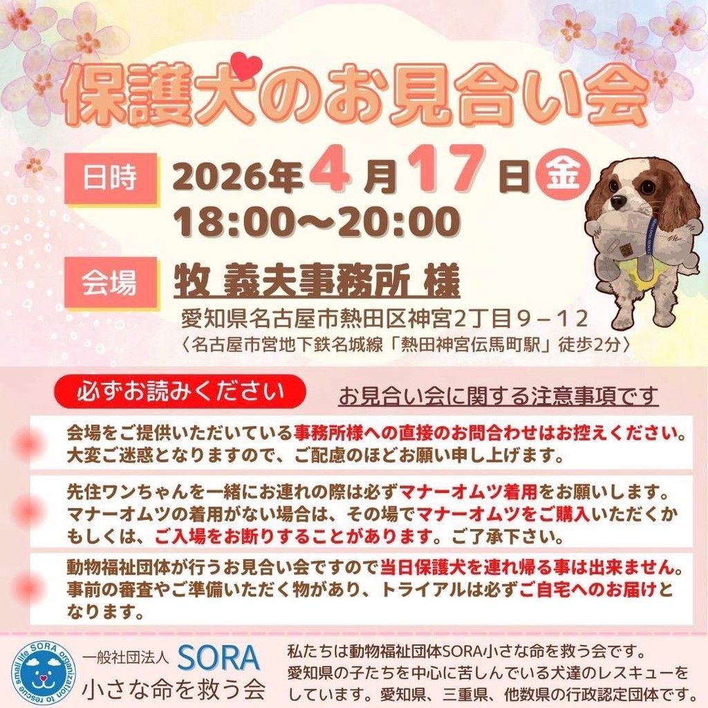 事前のお申込みは不要です。保護活動ブログで、開催日の数日前に譲渡会参加が決定したワンコたちのご案内もしておりますので、ご希望のワンコの参加をご確認してお越し頂けますと幸いです。