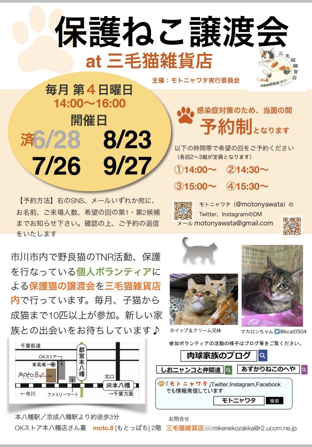 千葉県市川市の三毛猫雑貨店さんにて定例の譲渡会を開催します!