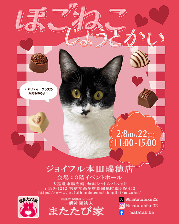 ジョイフル本田瑞穂店で保護猫の譲渡会を開催いたします!