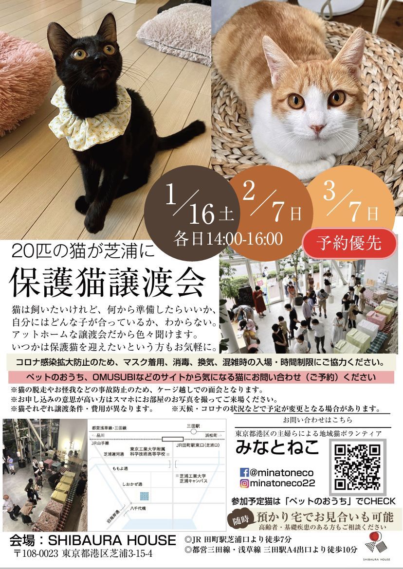 ~約20頭の猫が芝浦に集合~みなとねこ保護猫譲渡会猫は飼いたいけれど、何から準備したらいいか、自分にはどんな子が合っているか、分からない。アットホームな譲渡会だから色々聞けます^^いつかは保護猫を迎えたいという方もお気軽にお越しください。