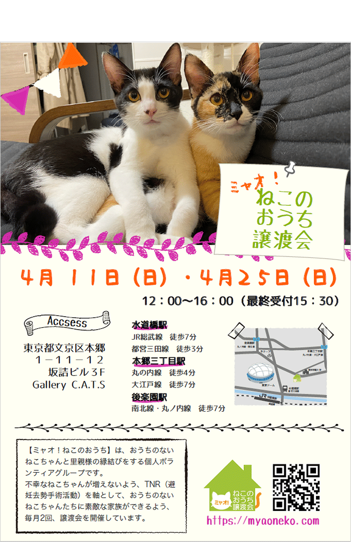 ミャオ!ねこのおうち譲渡会 ホームページhttps://myaoneko.com