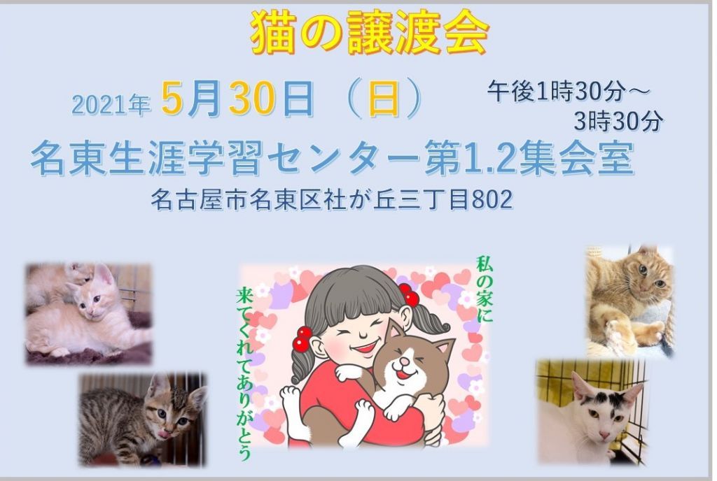 猫の譲渡会のお知らせ