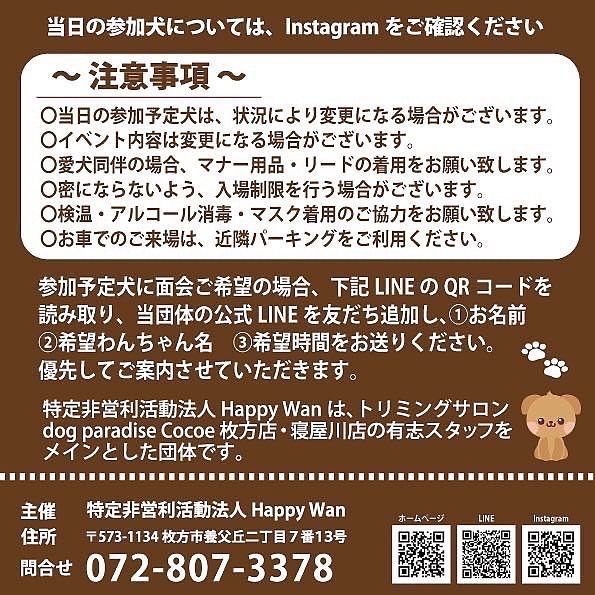 会場: dog paradise Cocoe 淀川店 (大阪市淀川区木川東4-11-13)