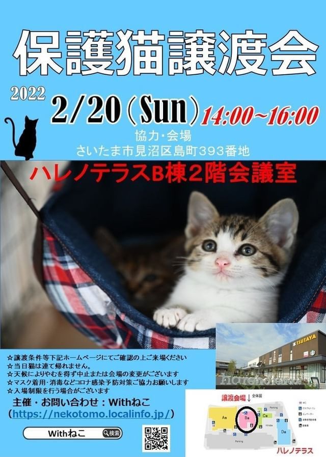 withねこ様主催の譲渡会にしっぽのしらベの猫も参加します。
