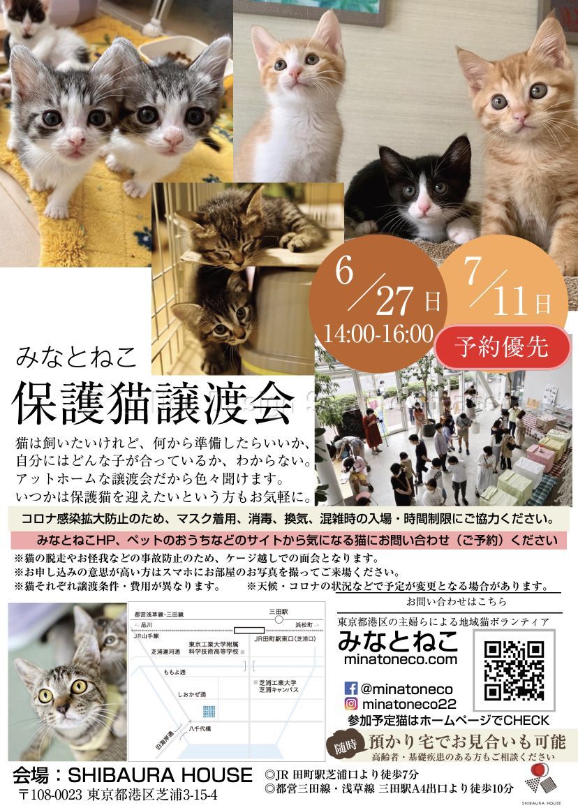 2020年も184匹の譲渡を行なった、みなとねこが田町駅芝浦口で譲渡会を開催します。