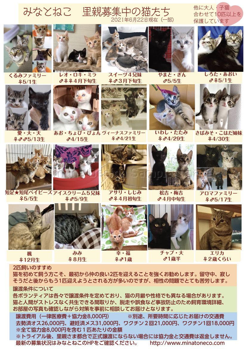 今回は子猫中心です。それ以外にもみなとねこの預かり家庭には総勢60匹もの3月以降生まれの子猫がおります。未ワクチンゆえにまだ譲渡会デビューができない子についてもご相談を承ります。