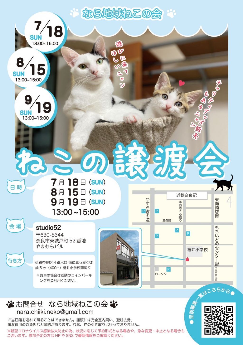 毎月奈良市ならまちにて猫の譲渡会を行っております。