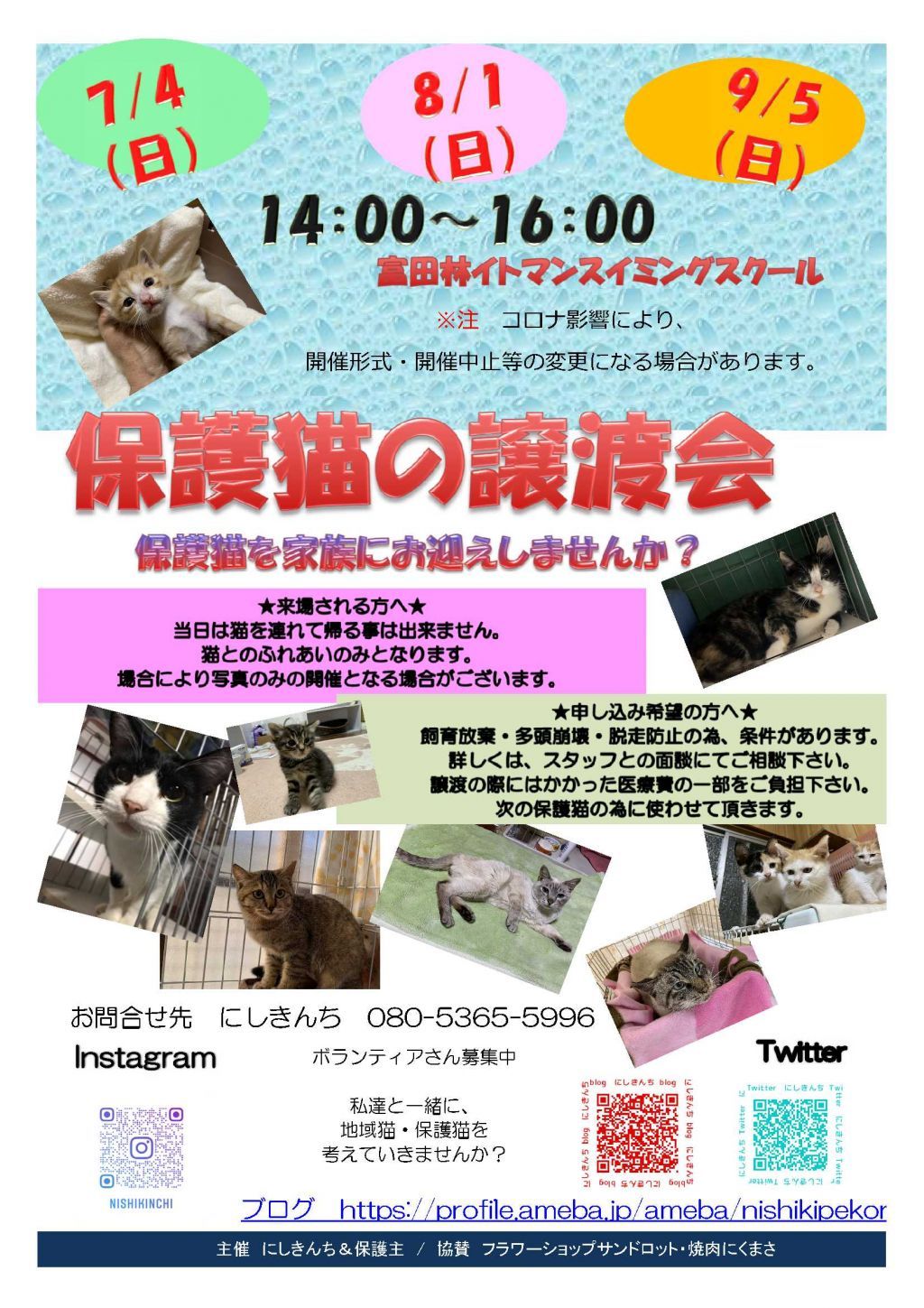 保護された猫さん達はボランティアだけでなく、飼育不可の住居のご家庭で、一時保護されていたり、高齢者の方が弱ってる猫を救ったけれど最後まで面倒をみれないなど、様々な事情で新しい家族を探してる猫さんが参加します。
