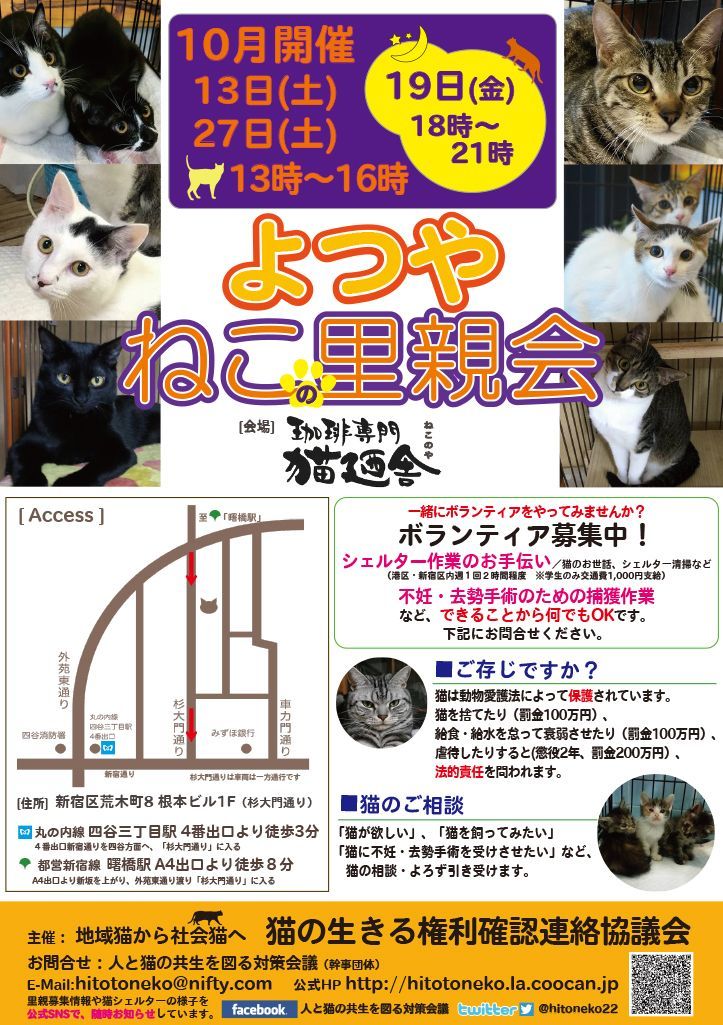 10月13日(土)地域猫から社会猫へ FIPフリー・四谷猫廼舎(ねこのや)里親会
