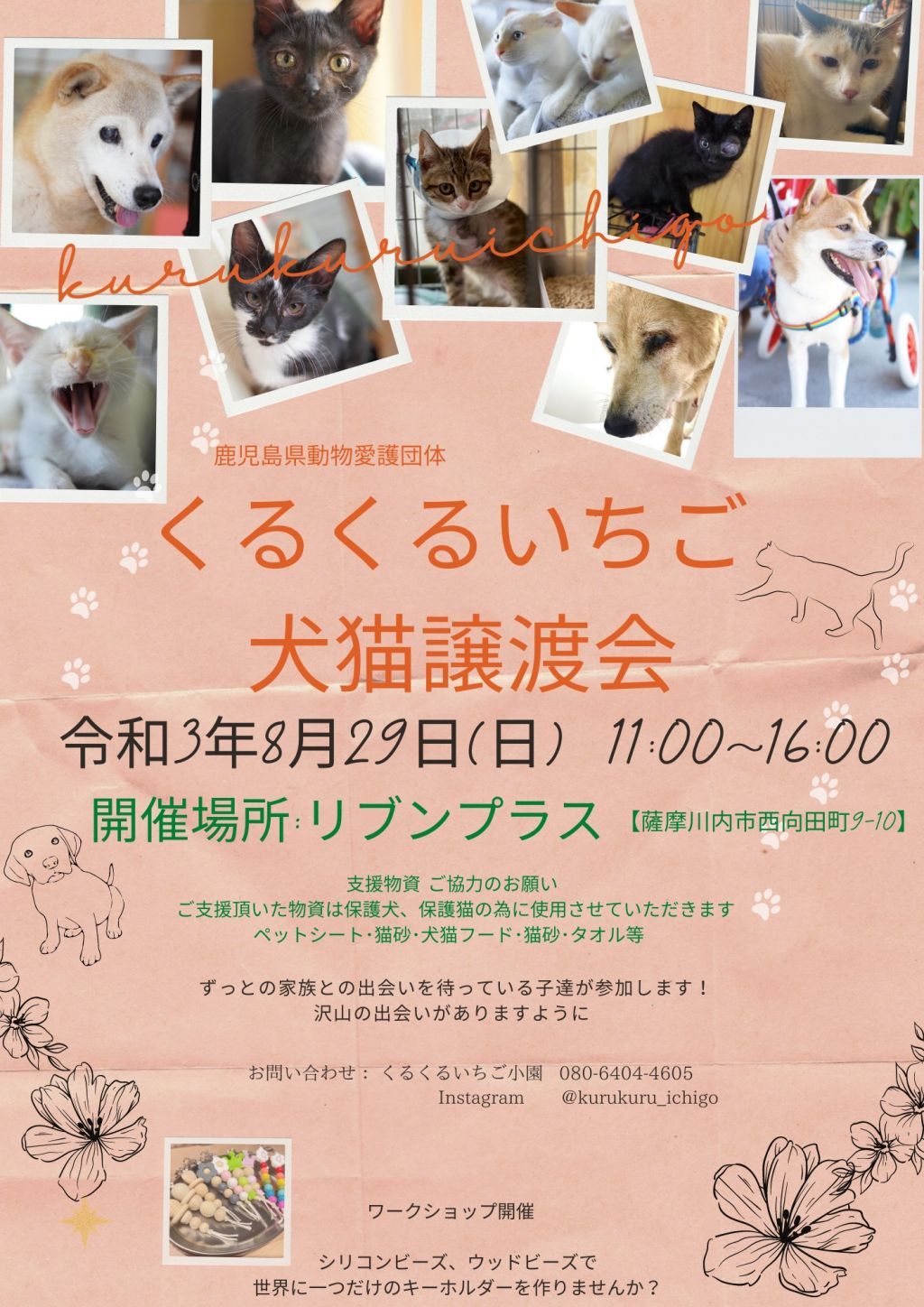 可愛い犬猫がずっとのお家を探しています♪シリコンビーズワークショップも実施!夏休みの思い出に作りましょう♪