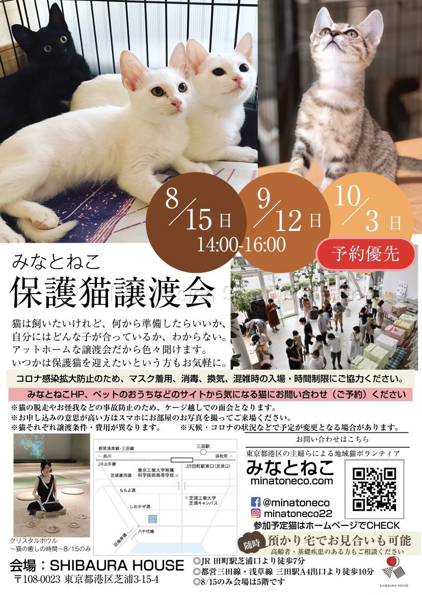 2020年も184匹の譲渡を行なった、みなとねこが田町駅芝浦口で譲渡会を開催します。