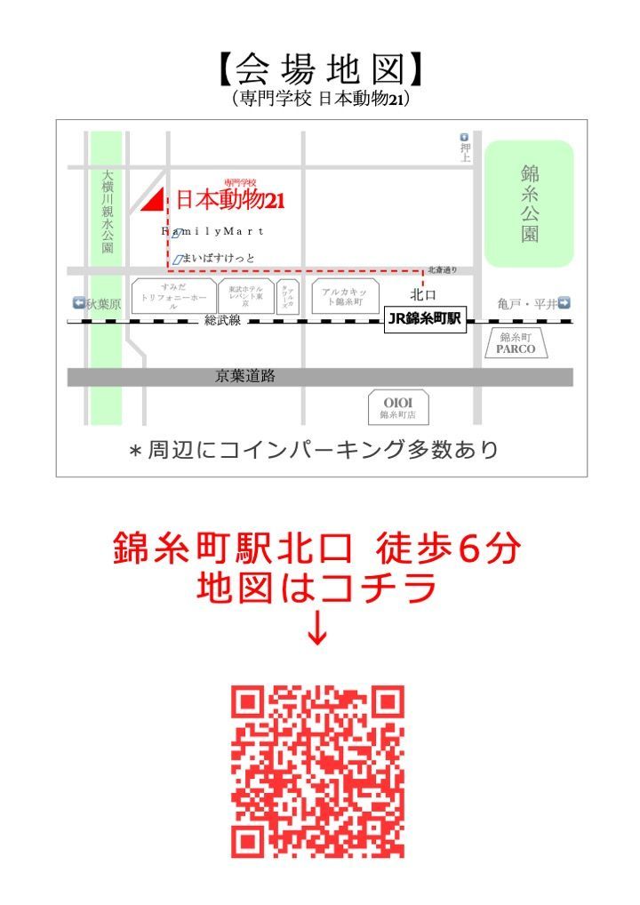 会場: 専門学校 日本動物21 4F (受付は1Fで行います) (墨田区錦糸1-11-10, 専門学校 日本動物21 4F)