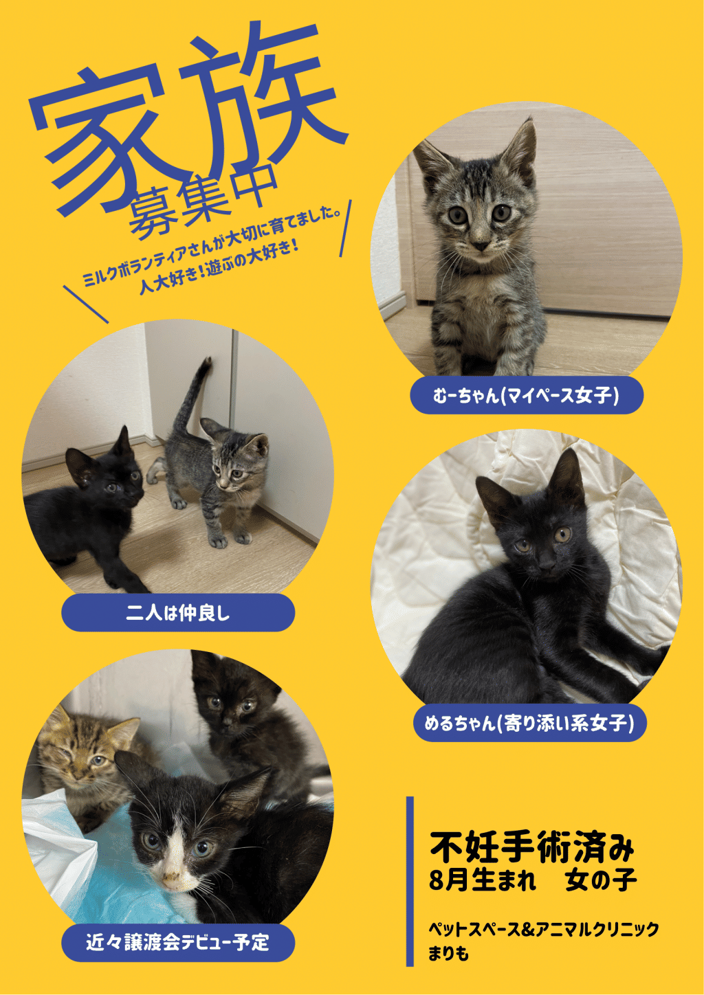 複数の猫でも、子猫、成猫、キジトラ子猫などざっくりした希望でもかまいません。