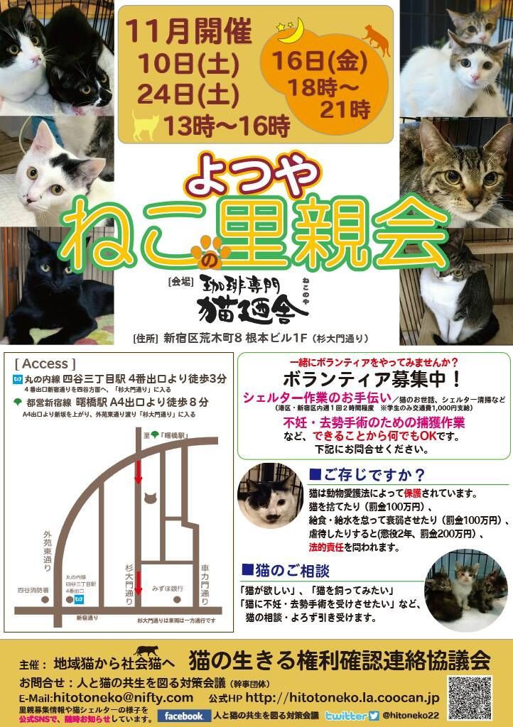 11月24日(土)地域猫から社会猫へ FIPフリー・四谷猫廼舎(ねこのや)里親会