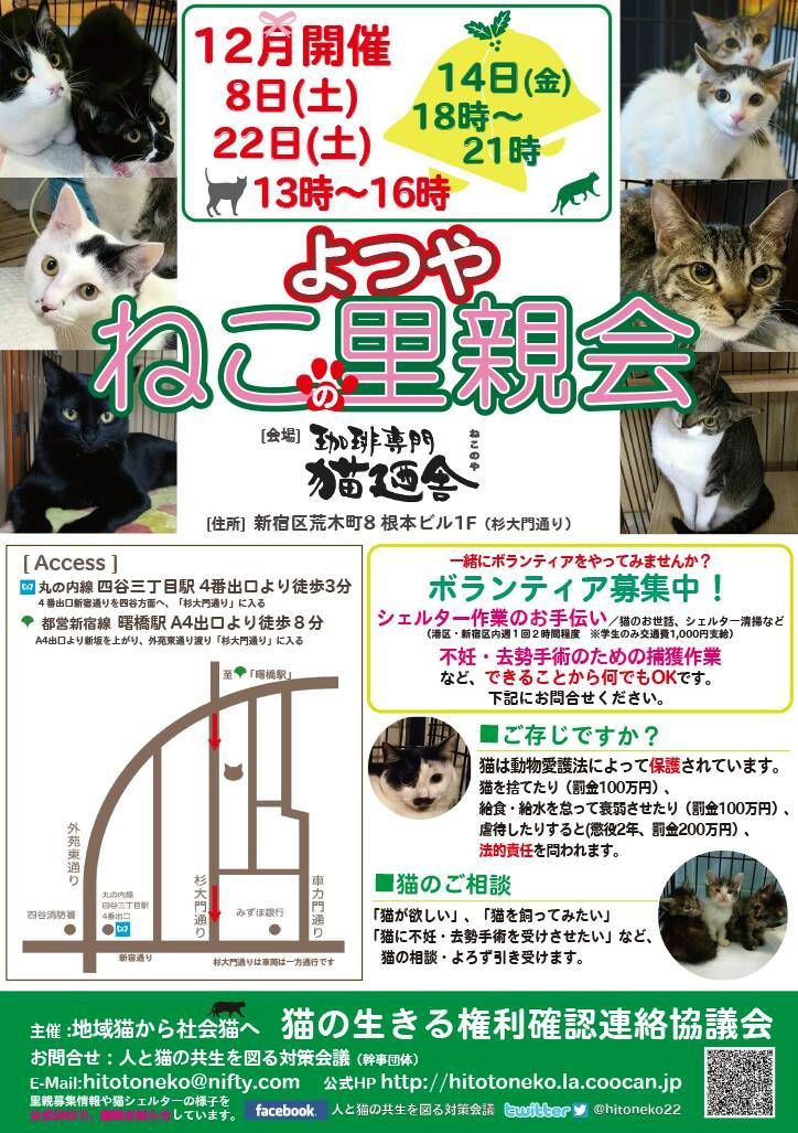12月22日(土)地域猫から社会猫へ FIPフリー・四谷猫廼舎(ねこのや)里親会