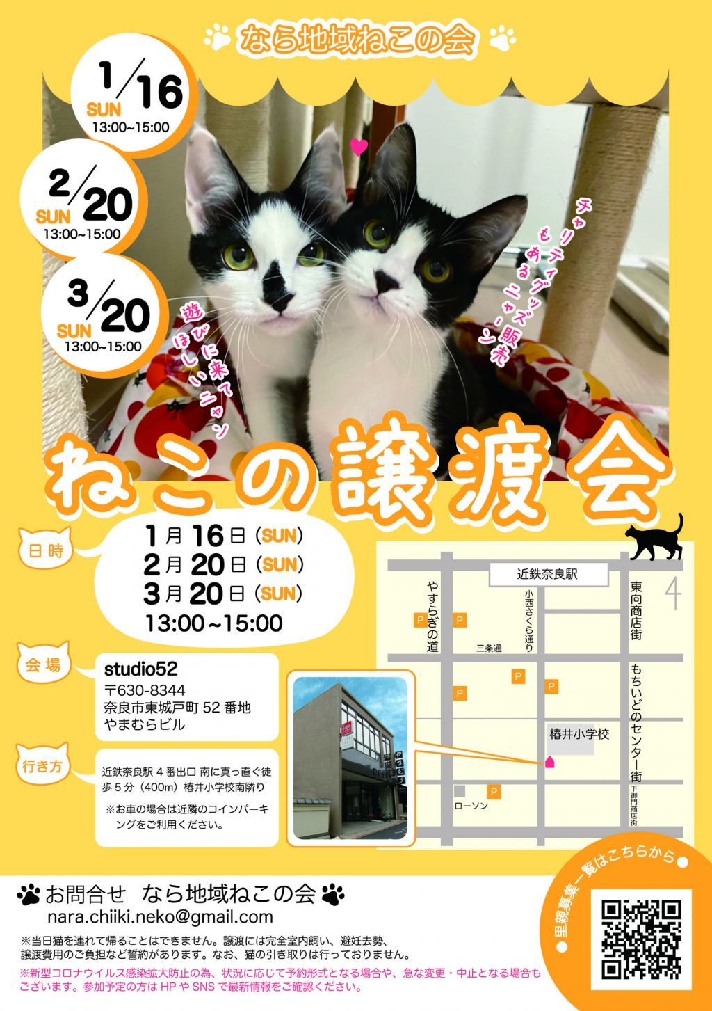 毎月奈良市ならまちにて猫の譲渡会を行っております。