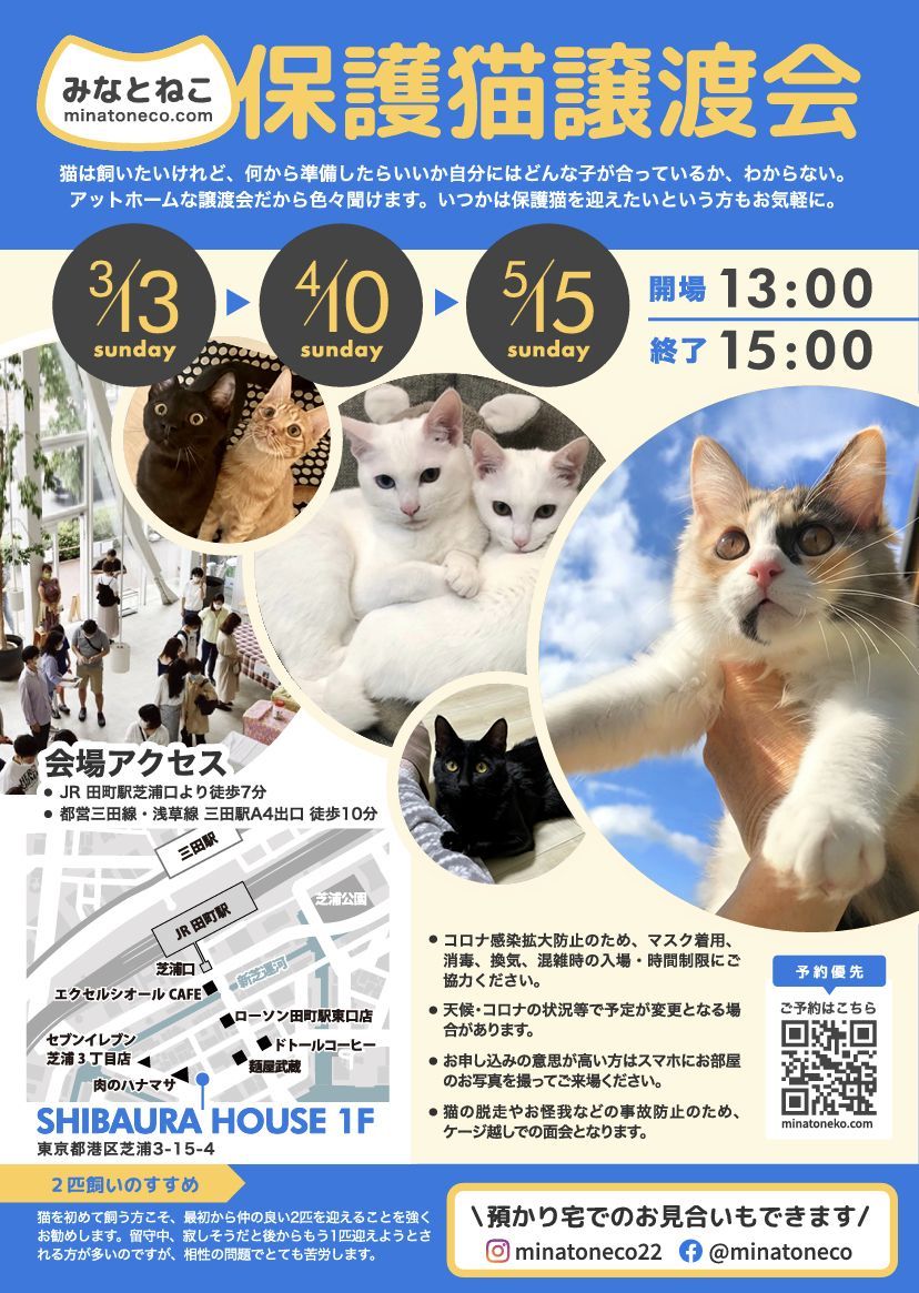 譲渡会のご予約はみなとねこのHPよりお願いします