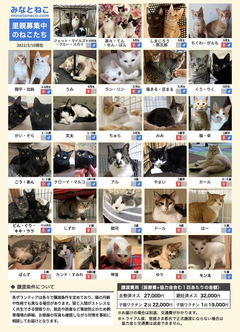 実際の参加予定猫は4/9(土)20:00までにみなとねこのHPやFacebookページでご紹介します。