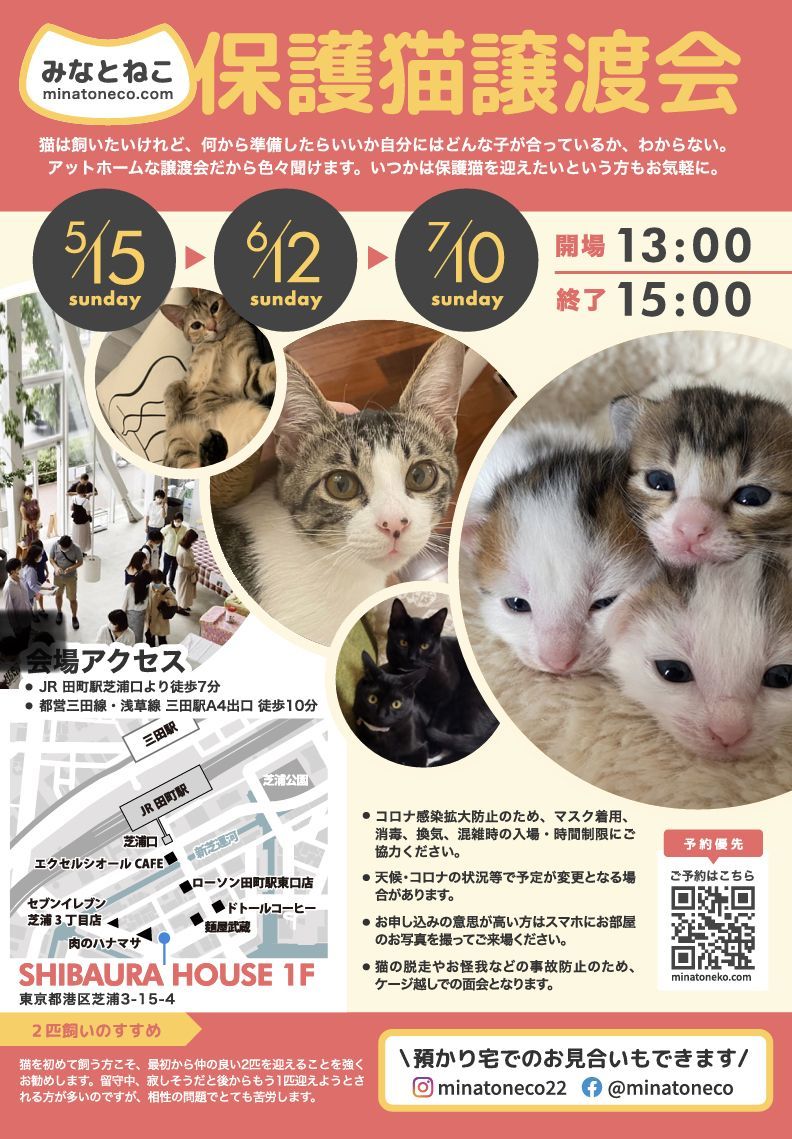 譲渡会のご予約は5/1(日)14:00よりみなとねこのHPよりお願いします