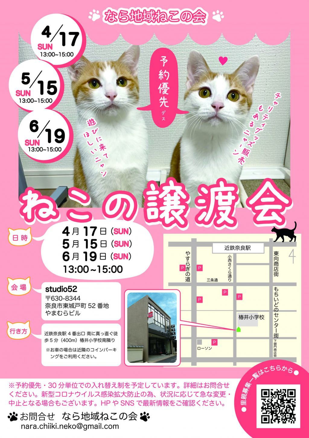 毎月奈良市ならまちにて猫の譲渡会を行っております。