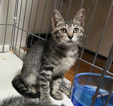 キジトラ4兄妹のうちの1頭です。人懐こく、元気いっぱい、よく遊びます。