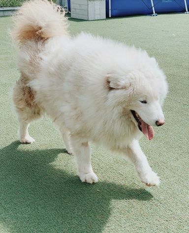 ぼくの名前はサモン!サモエドで誕生日はわかっていません。年齢は5歳で、年齢層は 子犬 です。体重は20kgです。募集経緯は、ブリーダー放棄です。性格は、さみしがり屋、明るい、人懐っこいと言われています。